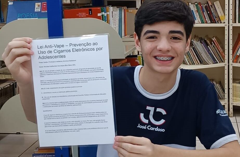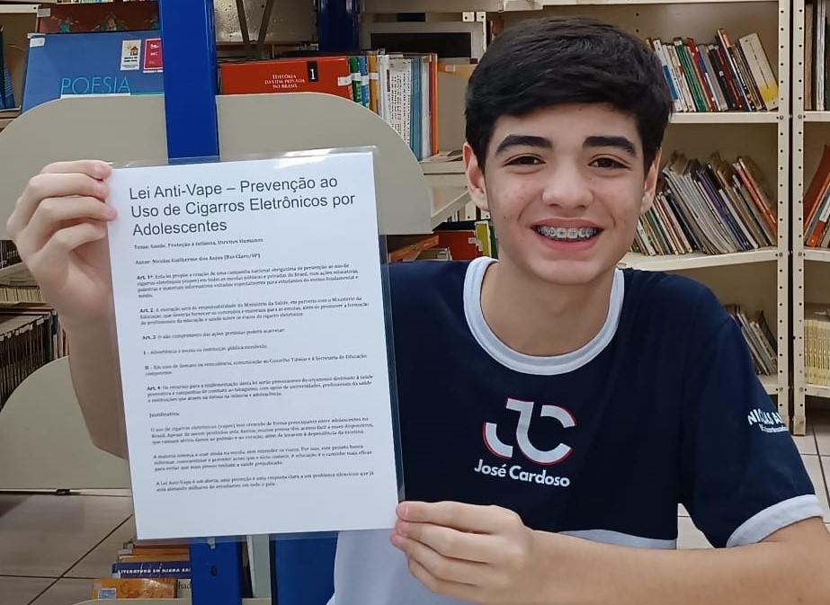 Nicolas é estudante do 8º ano da Escola Estadual José Cardoso, localizada na cidade de Rio Claro, a 173 quilômetros da capital. O projeto dele prevê uma campanha nacional de conscientização sobre os perigos do vape, voltada a estudantes de todo o país. A iniciativa inclui palestras, ações educativas e distribuição de materiais informativos, especialmente direcionados aos alunos do Ensino Fundamental e Médio.