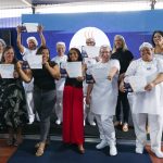 As merendeiras Rivani Gomes (EC 18) e Manoelisa Oliveira (EC 12) foram selecionadas para a semifinal Por Giordano Bazzo, Ascom/SEEDF A Coordenação da Regional de Ensino do Gama é a sétima região administrativa a participar da Caravana Sabor de Escola. Foto: Felipe de Noronha, Ascom/SEEDF. Com receitas cheias de criatividade, as merendeiras da Coordenação