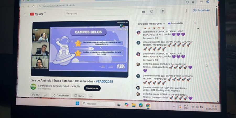 Projeto da Seduc/GO e Controladoria-Geral estimula cidadania e protagonismo dos estudantes nas unidades da rede pública Ocorreu nesta segunda-feira (13/10), no canal da Controladoria-Geral do Estado de Goiás (CGE/GO), a live de anúncio das 144 escolas classificadas para a etapa estadual do projeto Estudantes de Atitude 2025. O encontro virtual contou com a participação de