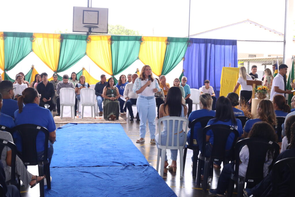 “Nossos alunos têm uniformes completos, recebem uma alimentação de qualidade e contam com uma escola confortável para aprender”, destacou a secretária de Estado da Educação, Fátima Gavioli.