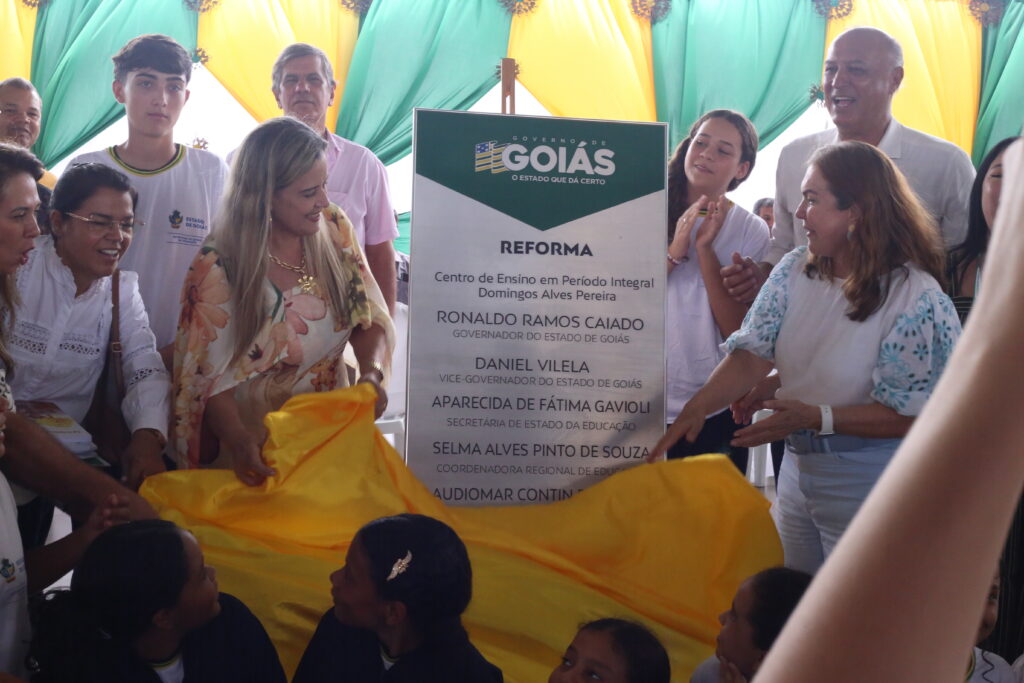 Mais uma unidade da rede pública estadual de ensino recebe melhorias em sua estrutura. O Governo de Goiás, por meio da Secretaria de Estado da Educação (Seduc/GO), fez, nesta quinta-feira (12/03), a solenidade de entrega da reforma e ampliação do Colégio Estadual em Período Integral (Cepi) Domingos Alves Pereira, em Acreúna.