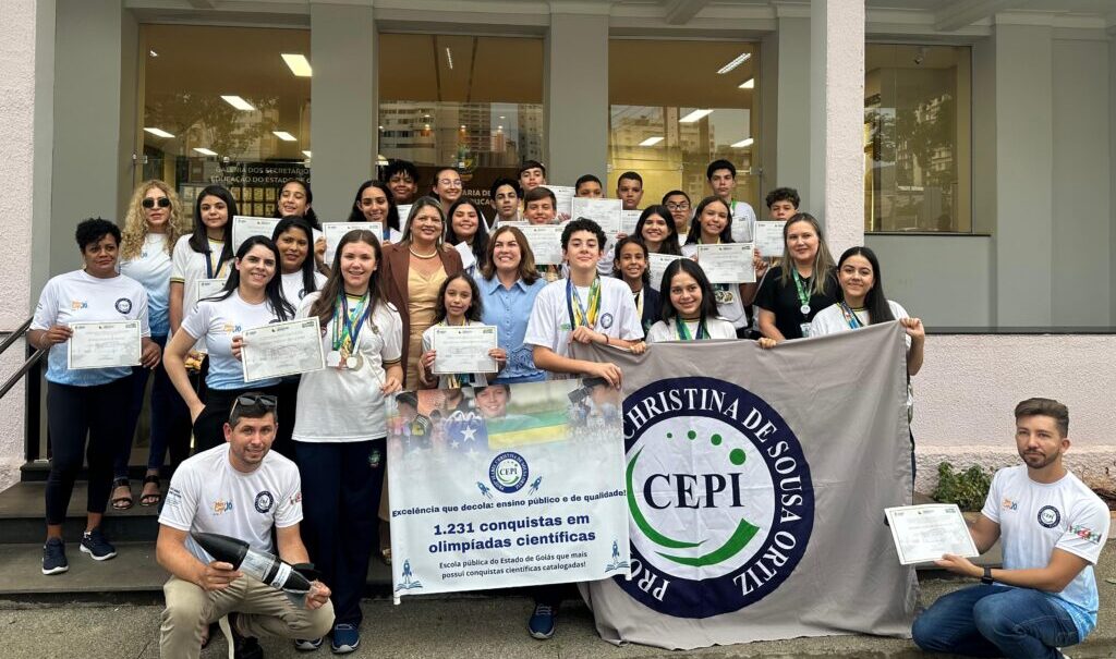 Os jovens também foram homenageados e receberam premiações em reconhecimento às conquistas obtidas em olimpíadas científicas, que evidenciam o compromisso e a excelência da educação pública em Goiás.