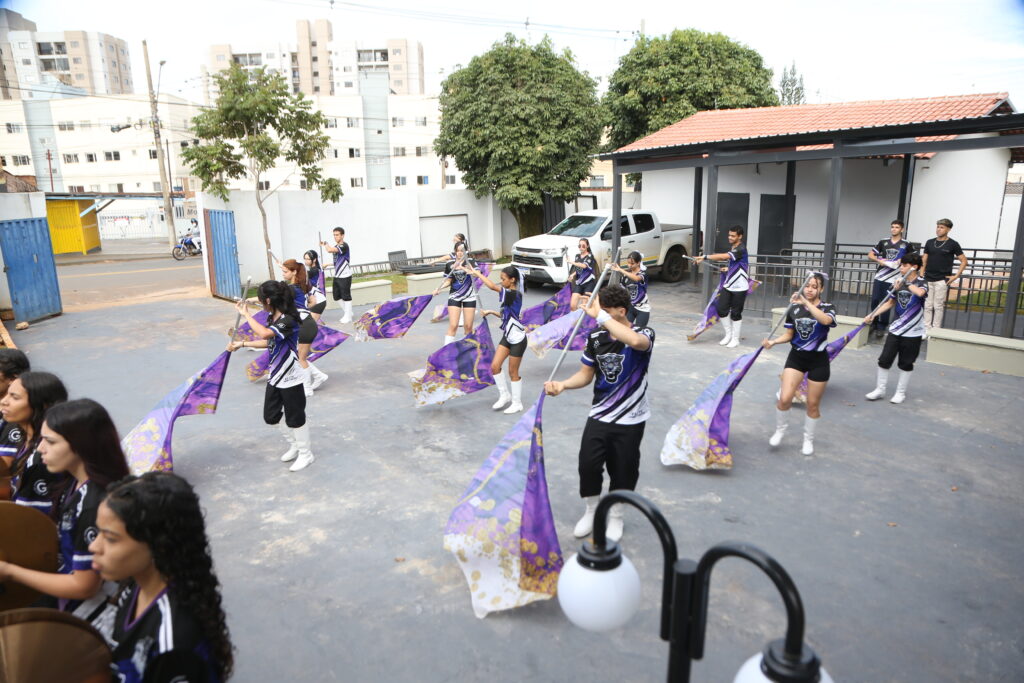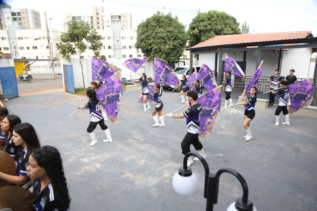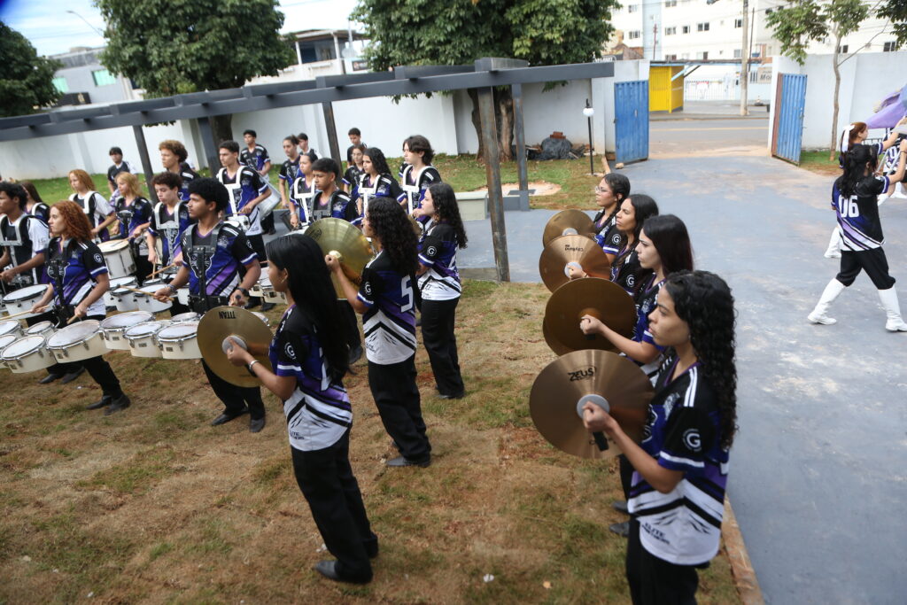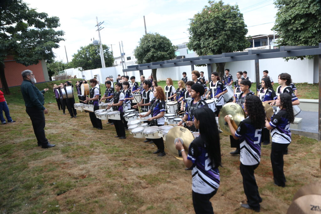 A solenidade de entrega começou com uma apresentação da banda marcial formada por estudantes da própria escola, que animou a comunidade escolar presente no evento.