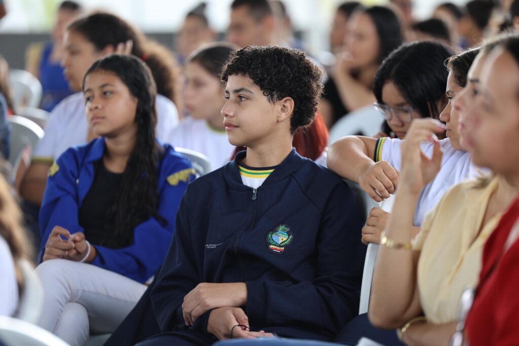Nas solenidades, também foi realizada a entrega do novo Cartão Bolsa Estudo aos estudantes da rede pública estadual. O benefício agora conta com tecnologia de aproximação, oferecendo mais praticidade e incentivando a permanência e a frequência escolar.