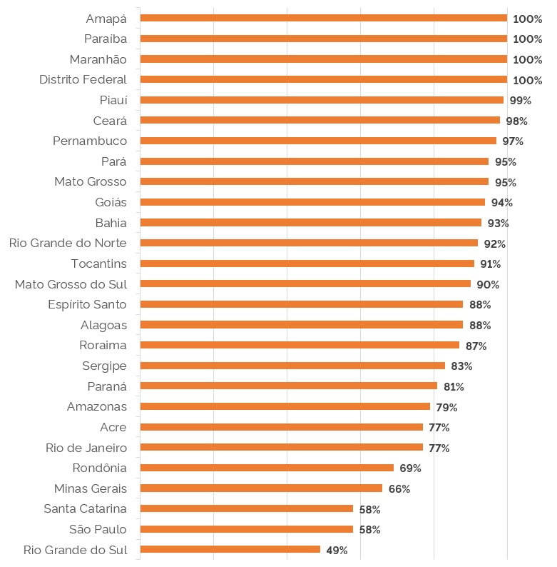 Percentual de municípios (por Unidade da Federação) que já aderiram