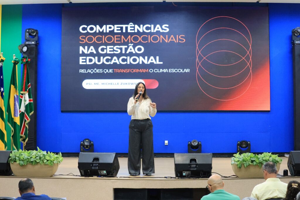 A programação do primeiro dia do encontro contou ainda com a palestra da psicóloga Michelle Sales Zukowski de Sousa, do Instituto Recriar Vidas, que falou sobre como as relações podem transformar o clima na escola.